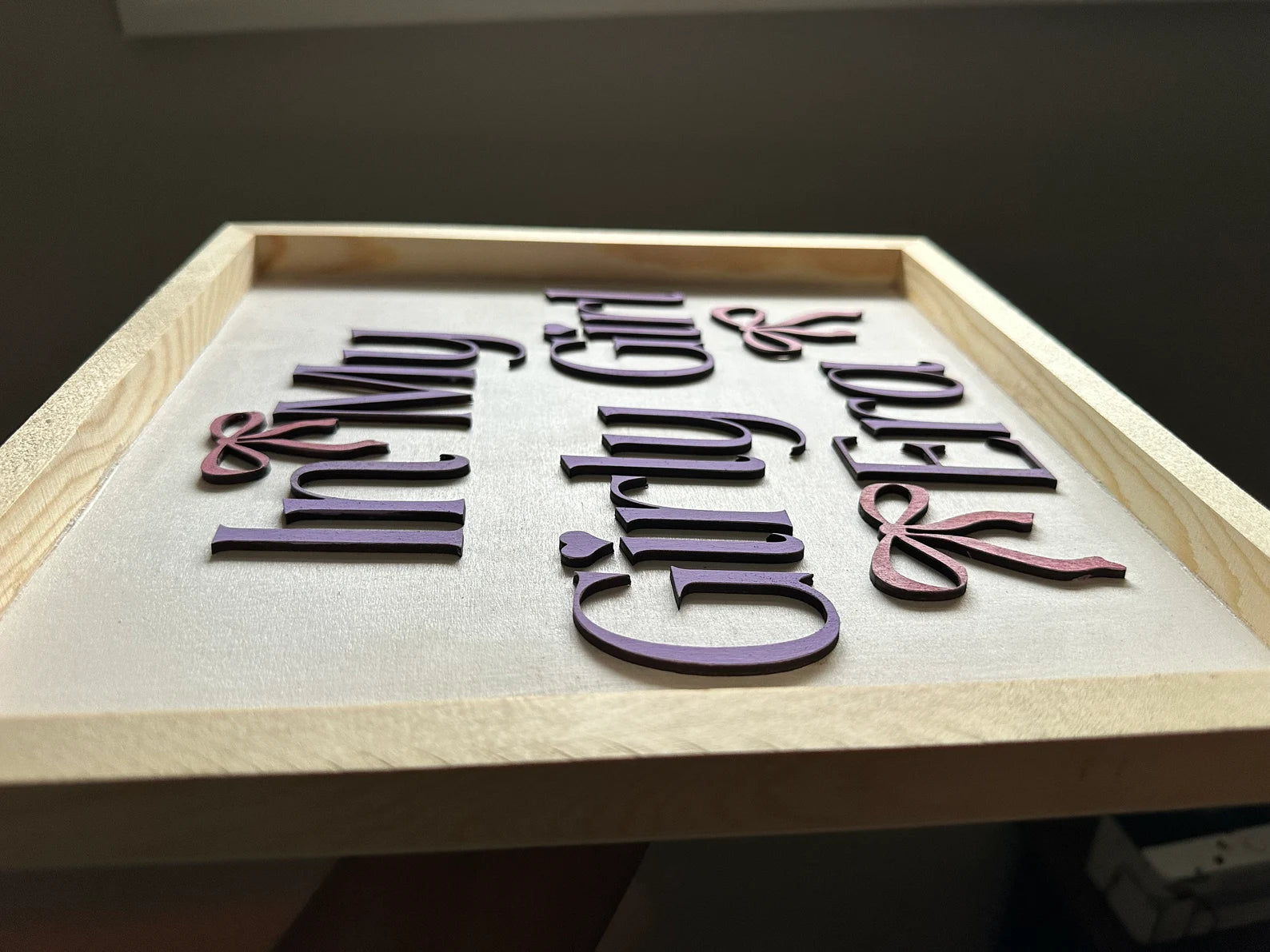 Introducing the Girly Girl Era Sign - a 12 inch framed sign that embodies the passion and energy of a girly girl era. With laser cut, dual-layered wood lettering, this sign is a must-have for any girly girl enthusiast. Add a touch of inspiration to your space with this charming piece.